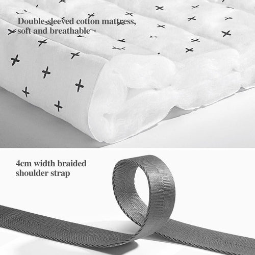 Suo il cuscino staccabile garantisce comfort e sicurezza con un materiale delicato sulla pelle, fodera con cerniera lavabile. Realizzata in poliestere impermeabile al 100%, mantiene la sua forma con un robusto telaio inferiore. Si piega e si apre facilmente con il suo design leggero e dotato di spallacci per una tracolla o una spalla stile borsa o una maniglia superiore per attaccarla a un passeggino. Il nostro passeggino pieghevole portatile per bambini Con la borsa fasciatoio puoi viaggiare con facilità, comodità e stile.